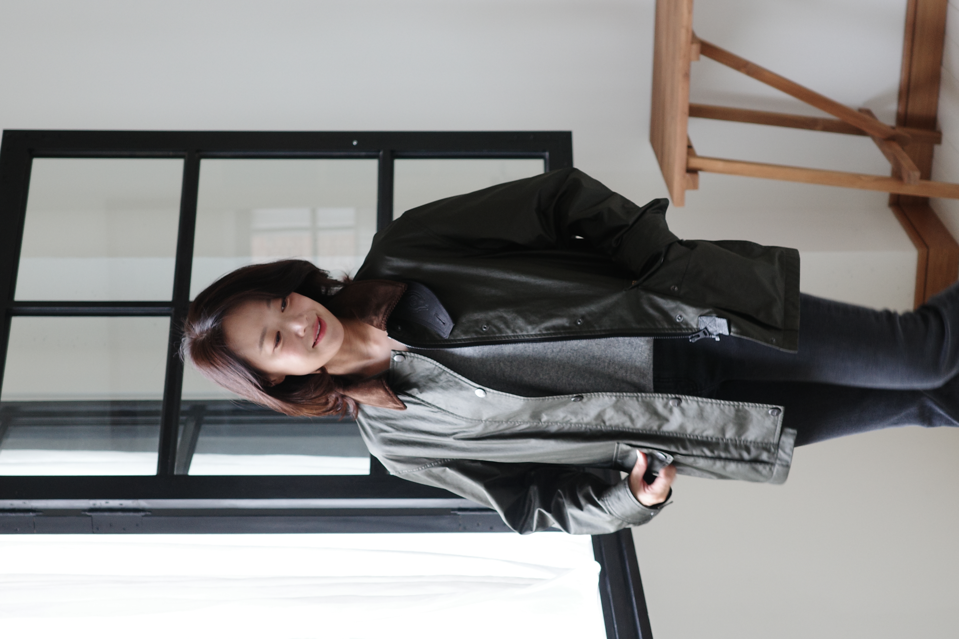 오래 전부터 <바스통> 왁스 재킷을 여성용으로 만들어 소개해야겠다고 마음 먹었습니다. 왁스 재킷에는 다른 옷으로 대체되기 어려운 고유한 멋짐이 있었기 때문인데요. 문제는 원단의 무게였습니다. 아무리 멋져도 옷이 무거우면 도무지 손이 가지 않을 테니까요. 하지만 이번 시즌 무게 이슈를 해결한 필드 재킷을 <생활명품 애>에서 소개하게 됐습니다. 새로운 원단을 개발했기 때문에 가능한 일이었는데요. 겉으로는 왁스 재킷 느낌이 물씬 풍기지만 사실 이 원단은 코튼이 아닌 폴리와 나일론을 교차해 만든 원단입니다. 가장 큰 장점은 무게가 엄청 가볍다는 겁니다. 하지만 그게 다는 아닙니다. 방수와 방풍 등 왁스 재킷의 장점들을 고스란히 물려 받았으니까요. 원단의 색상을 카키입니다. 여러 후보를 고민했지만 역시 오리지널리티가 가장 중요했습니다. 원단의 표면은 마치 스웨이드처럼 고급스럽지만 필드 재킷 디자인이 주는 묵직함 때문에 고유한 중성성이 묻어납니다. 카라는 브드러운 브라운 코듀로이로 택했어요. 가장 안정적이고 멋진 조합이죠. 바람이 거셀 땐 이탈리아산 베지터블 가죽으로 만든 '넥 비죠'를 착용하면 됩니다. 실용적인 디테일인데 심지어 멋지기까지 하죠. 탈부착이 되게끔 만들었는데 저라면 이 재킷의 '킥'으로 이 비죠를 사용할 것 같아요.(* 넥 비죠는 최종적으로 브라운 색상으로 변경됐음을 알려드립니다.) 이렇게 말이죠. 지퍼 맨 밑단엔 작은 가죽 조각이 덧대어져 있는데요. 지퍼를 채울 때 더 용이하도록 신경을 쓴 부분입니다. 별 것 아닌 것 같아도 입다보면 뭔가 다른 한 끝을 느끼실 수 있을 거예요. 이런 작은 디테일이 모여 좋은 제품과 그렇지 않은 제품이 구분되기도 합니다. 가을 겨울에는 짙은 색상의 옷들이 많으니까요 어떤 차림에 입어도 잘 어울리는 옷이 될거예요. 상하의를 블랙으로 통일하면 무조건 정답이고요, 여성스러운 스커트나 원피스에 걸쳐도 의외의 멋이 느껴집니다. 저는 진작에 완성된 샘플을 입으며 제품의 매력을 만끽했고 어서 가을이 오기만을 기다렸습니다. 다만 원단의 양이 부족하여 조금 밖에 만들어내지 못한 것이 너무 아쉬워요. 그간 생활명품애의 아우터를 즐겨입으셨던 분들이라면 분명 만족하실 거예요. 겉모습과 착용감이 너무도 다른, 반전이 있는 재킷입니다. 오피스 룩에 툭 걸쳐도 멋있고 가벼운 외출에 활용하기도 좋습니다. 가벼운 무게 때문에 매일 입고 싶은 필드 재킷이 되어줄 겁니다. 사이즈는 프리 사이즈 한 가지로 준비했습니다. 원단이 모자라 넉넉히 만들지는 못했어요. 필드 재킷의 매력을 느끼셨다면 조금 서두르시길 추천할게요.