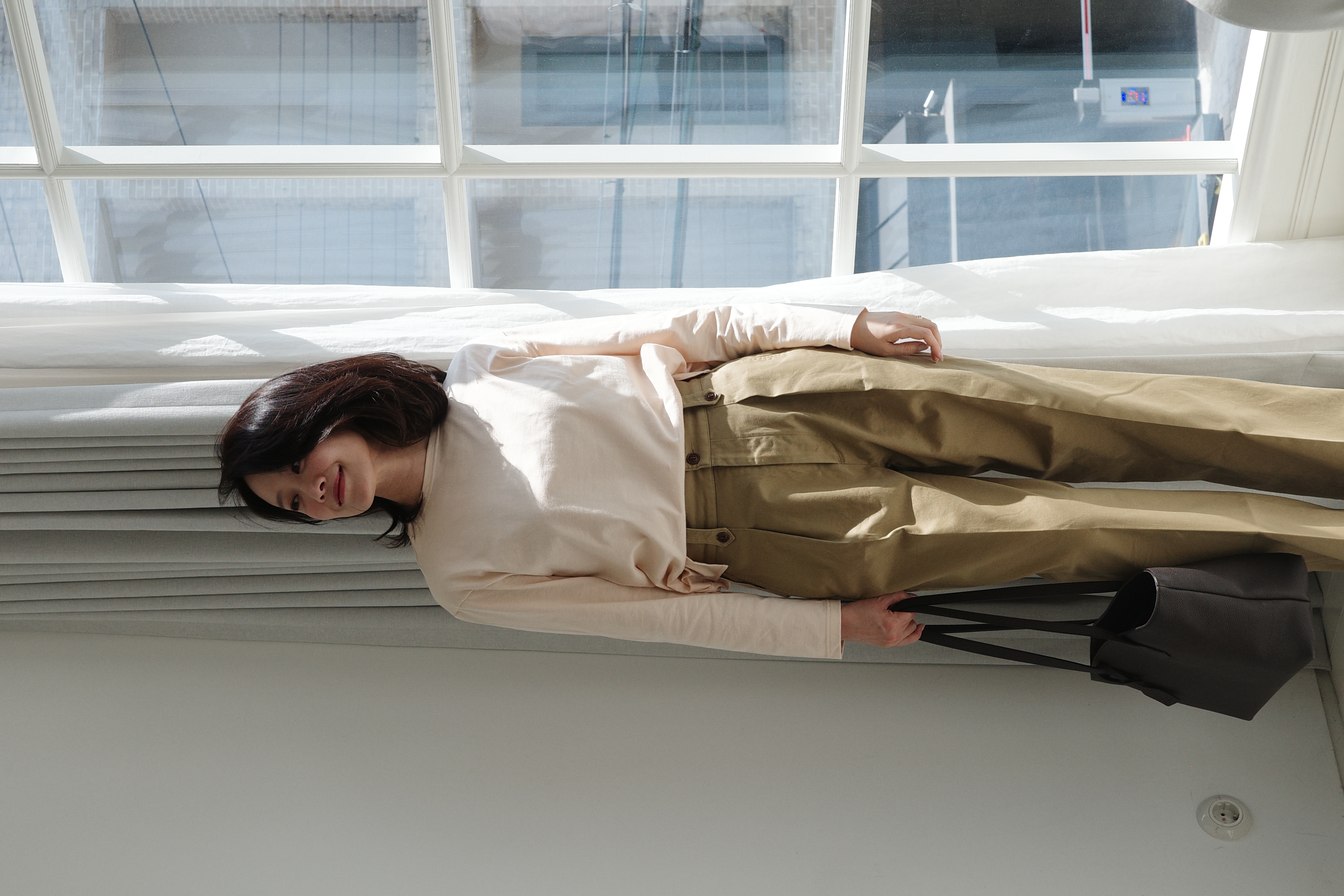 치노 팬츠는 19세기 중반 영국군이 식민지에서 입던 군복에서 시작됐습니다. 더운 기후에 맞게 면 트윌 소재를 사용했고 카키색으로 염색해 위장 효과를 노렸습니다. 시작은 군복이었지만 패셔니스타였던 미국 케네디 대통령이 즐겨 입으며 치노는 여유로운 어른의 바지로 자리매김했습니다. 그리고 미국 아이비리그 스타일과 결합되며 치노는 클래식 캐주얼 아이템으로 자리 잡게 됩니다. <생활명품 애>에서 치노를 선보이는 건 이번이 처음입니다. 좋은 소재, 아름다운 실루엣, 편안한 착용감까지... 빼놓을 수 없는 패션 아이템인 만큼 무엇 하나 놓치고 싶지 않았습니다. 저희의 치노를 봤을 때 제일 먼저 눈에 띄는 건 실루엣입니다. 하이웨이스트가 허리를 잡아주고 아래로 흘러내리는 느낌을 구현했고 요즘의 트렌드를 적절히 녹여 와이드하게 마무리했습니다. 하지만 우리 나이에 필요한 우아함의 끈은 놓지 않고 유지했습니다. 이 팬츠는 상의와 슈즈를 가리지 않습니다. 단정한 클래식 로퍼와, 스니커즈, 플랫슈즈와도 모두 어우러지며 세련된 룩을 완성합니다. 고급스러운 소재 역시 아름다움을 완성하는데 한 몫합니다. 100% 코튼 고밀도 트윌 원단을 사용해 흐물거리지 않고 탄탄하며 기분 좋은 광택감도 매력적입니다. 저는 이 치노 팬츠를 겨울부터 입어왔는데요. 착용감 역시 편안해 계절을 가리지 않고 즐겨 입는 바지가 되라라 확신합니다. 색상은 기본이 되는 카키 한 가지입니다. 여러분의 반응과 리뷰를 보고 네이비, 올리브, 블랙 색상까지 천천히 넓혀나갈 구상을 하고 있습니다. 올해 봄 선보인 데님 재킷, 사파리 코트, 발마칸 코트와도 잘 어울리는 팬츠입니다. 정말 많은 분들이 관심을 갖고 궁금해주셨는데요. 이번 수요일 밤 9시에 만나겠습니다.