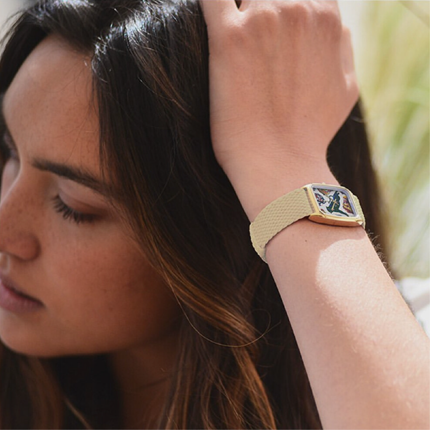 브랜드 LAPS를 만든 사람은 antonin mercier입니다. 인상 좋게 생긴 프랑스 사람이지요. 안토닌은 서른까지 현대 미술 박람회인 art paris 에서 일을 했습니다. 그 곳에서 경험한 예술과 미술에 대한 지식이 브랜드를 만들어가는 데 큰 도움이 됐습니다. 서른이 되던 해, 안토닌은 하던 일을 그만두고 미술 학교에 입학합니다. 그리고 시계 만드는 기술을 배워 LAPS를 런칭합니다. 고급 예술을 두루 접한 안토닌에게 이 시계는 고전적인 의미의 명품은 아니었을 겁니다. 하지만 자신이 좋아하는 예술과 시계, 그리고 독특한 소재가 만나 꽤나 새로운 시각의 물건이 완성됩니다. 먼저 Mai68. 프랑스 68혁명을 상징하는 시계입니다. '68혁명'은 1968년 5월 프랑스에서 일어난 사회 변혁 운동으로 반전과 남녀평등, 여성해방 등을 주장하며 기존 질서에 저항했습니다. 시계의 문구, 'la beaute est dans la rue'는 우리말로 '아름다움은 거리에 있다'는 뜻입니다. 다음은 20세기 미국 모더니즘을 대표하는 여성 화가 조지아 오키프의 사진을 활용한 시계입니다. 얼굴의 각도와 몸의 곡선이 로맨틱하게 표현돼 있습니다.우리에게 유명한 화가는 아니지만 시대와 편견에 맞섰던 여성 예술가의 영혼을 떠올려주면 좋겠습니다. 파리 퐁피두 센터에서 열리는 조지아의 전시를 앞두고 퐁피두센터와 우리나라에서만 판매되는 한정판 모델입니다. 마지막 제품 barbes는 낭만이 넘치던 1960년대 파리 지하철 노선도에서 이미지를 가져왔습니다. 나이트클럽이었던 물랑루즈와 문인들이 자주 찾던 카페가 인근에 위치한 지하철 역 barbes입니다.아직 자본주의와 세계화가 우리를 지배하기 전 낭만이 가득했던 시대를 그리워하며 만든 모델입니다. LAPS는 성별을 가리지 않습니다. 여성에게도 남성에게도 잘 어울립니다. 시계가 자신의 부를 증명하는 도구가 된 세상에서 LAPS는 시계를 다르게 정의해주리가 기대해봅니다. 저도 한 달 가까이 제품을 착용해봤는데요. 어떤 제품인지 주변에서 많이 물어봤고 제품에 호감을 표현했습니다. 합리적인 가격에도 감탄했습니다. LAPS는 모두 수작업으로 조립되고 사람의 손길로 마무리 되는 시계입니다. 제 맘에 쏙드는 브랜드 LAPS를 여러분에게 제안합니다.