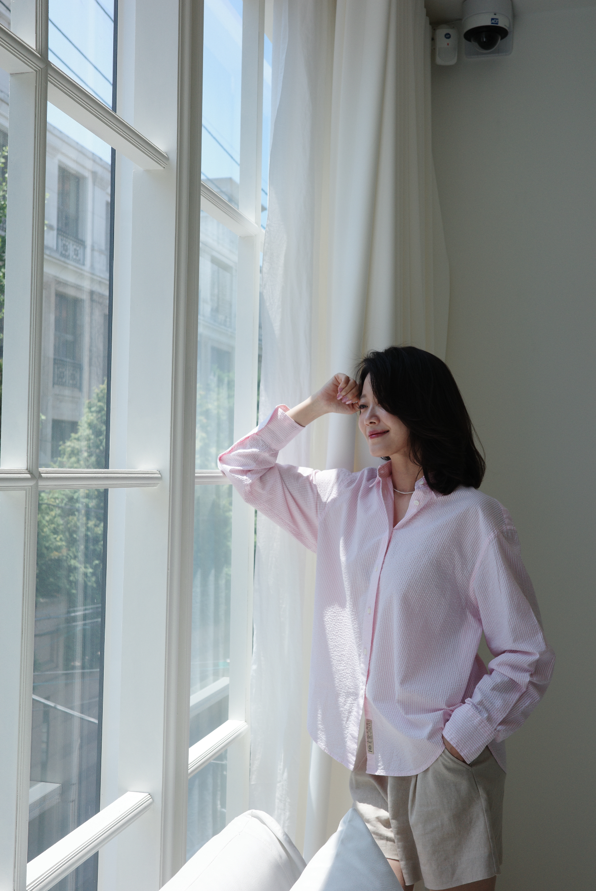 셔츠는 <생활명품 애>에서 가장 많은 사랑을 받아온 제품입니다. 제가 워낙 셔츠를 좋아하고요. 3년 전 저희의 첫 시작도 셔츠와 함께였습니다. 이래저래 셔츠에 대한 <생활명품 애>의 사랑은 계속되고 있지만 시즌마다 어떤 식으로 변주해 나갈지는 저희의 반복되는 숙제이기도 합니다. 그래서 이번 여름에는 셔츠의 소재를 바꾸었습니다. 바로 오버핏으로 완성한 시어서커 셔츠입니다. 시어서커 원단을 본 적이 있으신가요?영국과 미국에서 많이 사용된 이 원단에는 잔 주름이 잡히는 특징이 있습니다. 바로 이 주름이 덥고 습한 여름에 중요한 역할을 하게 되는데요. 주름으로 인해 몸과 원단 사이에 공기 층이 만들어지며 피부에 닿는 촉감이 시원하고요. 땀이 나도 잘 달라붙지 않습니다. 또 원단 자체에 주름이 있어 관리가 편한 장점도 있습니다. 세탁 뒤 툭툭 털어 입어도 무방한데요. 아무래도 여름철에는 세탁이 더 잦아질 수 밖에 없는데 그런 면에서 부담 없이 입기 좋습니다. 원가의 부담 때문에 시중에는 코튼으로만 짜여진 시어서커 원단을 찾기가 쉽지 않은데요. 저희는 소재와 만듦새 두 가지만을 신경 쓰기 때문에 1백% 시어서커 코튼으로 셔츠를 완성했습니다. 컬러는 두 가지예요. 먼저 블루입니다. 시원한 색상이죠. 여름철 어떤 의상과도 조화롭습니다. 다음은 올해 처음 선보이는 핑크입니다. 축 처진 여름, 우리의 기분을 상쾌하게 해줄 색상입니다. <생활명품 애>를 처음 시작할 때부터 시어서커 소재의 여름 셔츠를 만들겠다 다짐했었어요. 만져보니 달랐고 촉감에 예민한 저 같은 사람에겐 더없이 좋은 여름 소재였죠. 그리고 지난해 여러분이 큰 호응으로 아껴주신 덕분에 오래 새로운 색상으로 소개하게 됐습니다. 뜨거운 야외, 썰렁한 실내 온도를 다 견뎌줄 수 있으며 일상의 주름이 오히려 멋으로 느껴지는 매력적인 옷입니다. 이번 여름, 사무실에서 휴가지에서, 그리고 일상생활에서 가장 많이 입게 될 옷이 될 거라고 확신합니다. 끝