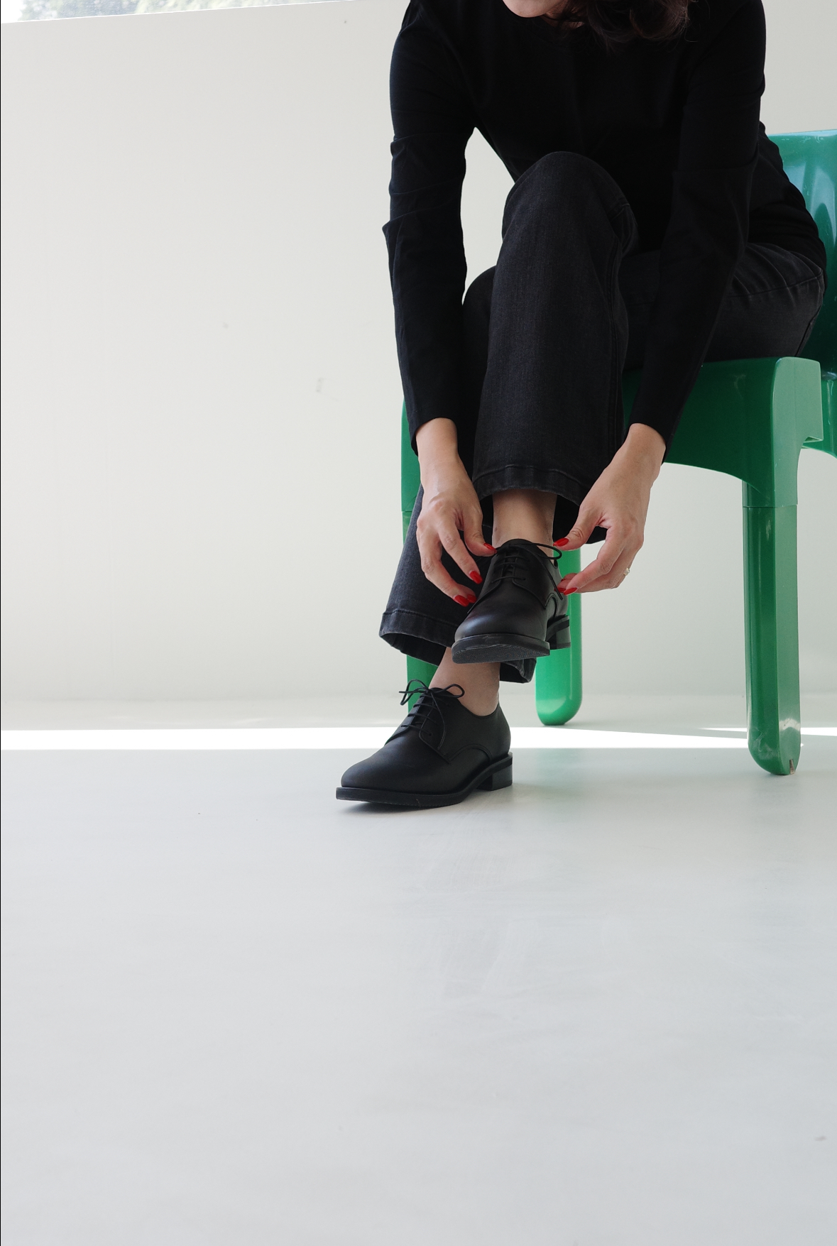 더비 슈즈를 준비하며 가장 많이 떠오른 단어는 '조화로움'입니다. 단단한 느낌을 전해주는 외관과는 달리 가죽은 더없이 유연하고요. 남성 신발이 떠오르는 디자인이지만 여성적인 곡선이 포함돼 이질감 없이 다가옵니다. 데님에 페이크 삭스를 착용해 발목이 살짝 보이게 해도 매력적이고요. 다양하고 화려한 양말 패션을 적용하기에도 좋습니다. 포멀한 슬랙스에는 물론, 하늘하늘한 스커트에도 잘 어울리는 디자인입니다. 더비라고 불리는 이 구두는 발등 부분이 날개처럼 되어 있는 레이스업 구두입니다. 발등 부분이 열려있어 족형에 구애받지 않고 편하게 신고 벗을 수 있고요. 캐주얼과 포멀 모두 잘 어우러집니다. 저는 평소 한 유명 브랜드의 옥스퍼드 슈즈를 즐겨 신었어요. 부드럽고 유연한 가죽이 발목 어디에도 거슬림이 없어서 좋았거든요. 한 가지 아쉬운 점은 부드러운 만큼 빨리 닳고 헤진다는 것이었는데요. 무이와 만든 이 더비 슈즈는 그런 아쉬움을 깔끔히 해소해줍니다. 보통 여성화보다 가죽을 두껍게 써 내구성을 높였고요. 발 앞 부분에 적당한 공간을 부여해 편안함을 느끼도록 했습니다. 오래 서 있거나 걸어도 든든하고 편안한 구두입니다. 활동성을 위해 첫 샘플에서 5센티였던 굽을 3센티로 낮춰고요. 고밀도 쿠션과 라텍스 힐 쿠션을 적용해 착화감을 강화했습니다. 또 한겨울에도 신어야 하는 만큼 미끄러움을 방지할 요철로 아웃솔을 구성하였습니다. 이 더비 슈즈는 신을수록 매력적으로 변해 갑니다. 내 습관을 반영해 가죽에 주름이 생겨나기 때문인데요. 5년 동안 신은 무이 대표님의 구두가 새제품보다 훨씬 더 멋져 보였습니다. 오랫동안 내 옷장에 있을 제품들만 소개하자는 <생활명품 애>의 철학과도 잘 어울리는 구두입니다. 내구성과 편안함을 두루 갖춘 구두입니다. 바쁜 하루가 예상되는 날이라면 내 발을 단단히 지지해 줄 더비 슈즈를 권해드립니다. size: 225~250 price: 258,000원open: 09/18(수) 21:00