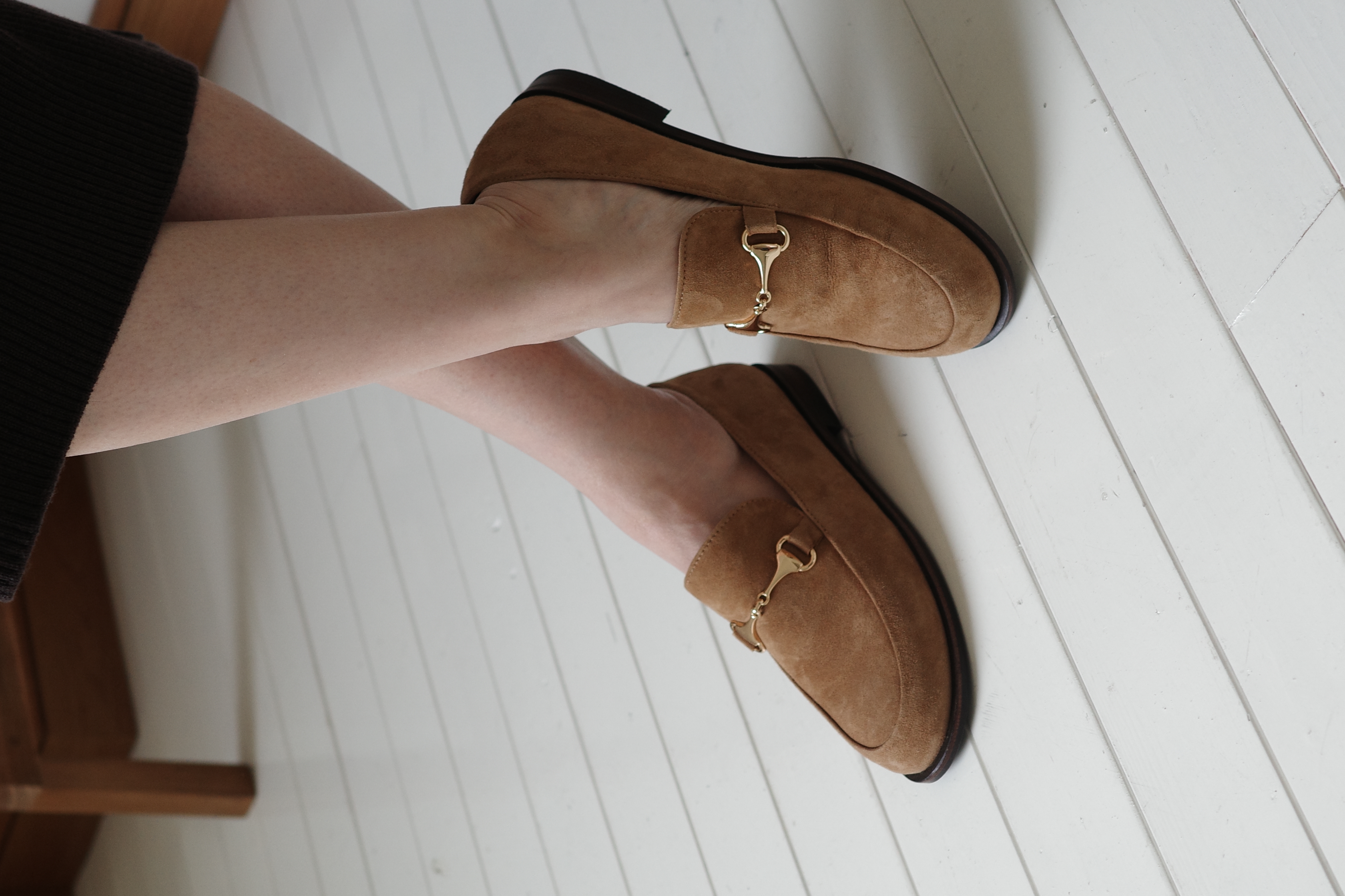 지난 봄 저희가 선보인 클래식 로퍼에 대한 반응은 뜨거웠습니다. 오래 고민했고 만족할 만한 결과물이 나왔는데 정확하게 알아봐 주시고 당일에 거의 모든 신발이 판매됐으니까요. 발의 모양은 우리들의 얼굴 생김새처럼 다양해 모두에게 편안한 착화감을 구현한다는 건 무척 까다로운 일이었지만 이제 <무이>와 함께 만든 제품들에 대한 신뢰는 견고하게 자리 잡은 느낌입니다. 이번 가을의 시작은 로퍼로 결정했습니다. 하지만 똑같으면 재미 없잖아요. 재료를 바꾸어 스웨이드 로퍼로 완성했습니다. 로퍼(loafer)는 빈둥거리며 시간을 보내는 사람이라는 뜻입니다. 구두란 마땅히 끈을 묶어 신어야 하는데 그게 귀찮아 끈을 없앴으니 게으름뱅이라 부를만도 하겠지요. 하지만 시대가 변함에 따라 게으름뱅이의 신발이 클래식 구두의 대명사처럼 여겨지게 됐습니다. 이 사진은 스웨이드 로퍼를 만들겠다고 마음 먹은 시작이기도 했습니다. 어떤가요? 편안하면서 우아하고 친근하면서 절제된 다이아나 왕세자비의 룩을 완성시켜 줍니다. 저희는 스웨이드 색상을 고르는 데 많은 시간을 할애했습니다. 너무 짙으면 더워 보이고 뻔한 컬러는 재미 없으니까요. 핀터레스트에서 받은 영감을 바탕으로 색상을 정했고요. 니트와 스웨터, 코듀로이 팬츠 등 올 가을 저희가 준비한 옷들과의 조화도 고려했습니다. 굽은 2cm로 과하지도 덜하지도 않게 완성했습니다. 저희 로퍼의 최우선 가치는 가벼운 착화감이었습니다. 로퍼 특유의 클래식한 디자인을 유지하면서도 착용감은 마치 플랫슈즈처럼 유연하고 가볍기를 원했으니까요. 고밀도 쿠션에 천연 라텍스, 거기에 스펀지까지. 3중 쿠션을 적용해 신자마자 남다른 편안함을 느낄 수 있을 겁니다. 로퍼를 신고 발목을 노출하면 발의 라인이 더욱 가늘고 길어 보입니다. 또 양말을 통해 새로운 스타일을 만들어 낼수도 있지요. 간혹 스웨이드 소재를 어려워 하시는 분들도 있는데요. 스웨이드는 천연 가죽의 부드러운 안쪽을 긁어 표면에 기모를 일으킨 가죽입니다. 굉장히 부드럽고 유연해 일반 가죽보다 착화감이 좋고 관리도 편합니다. 이번 기회에 스웨이드 구두를 경험해 보시길 추천드립니다. 분명 특별한 매력을 지닌 로퍼지만 의외로 어디에나 매치가 쉬운 구두입니다. 스커트와 팬츠 뿐 아니라 어떤 하의에도 잘 녹아드니 이번 가을 겨울 코디에 적극 활용해 보세요! 끝