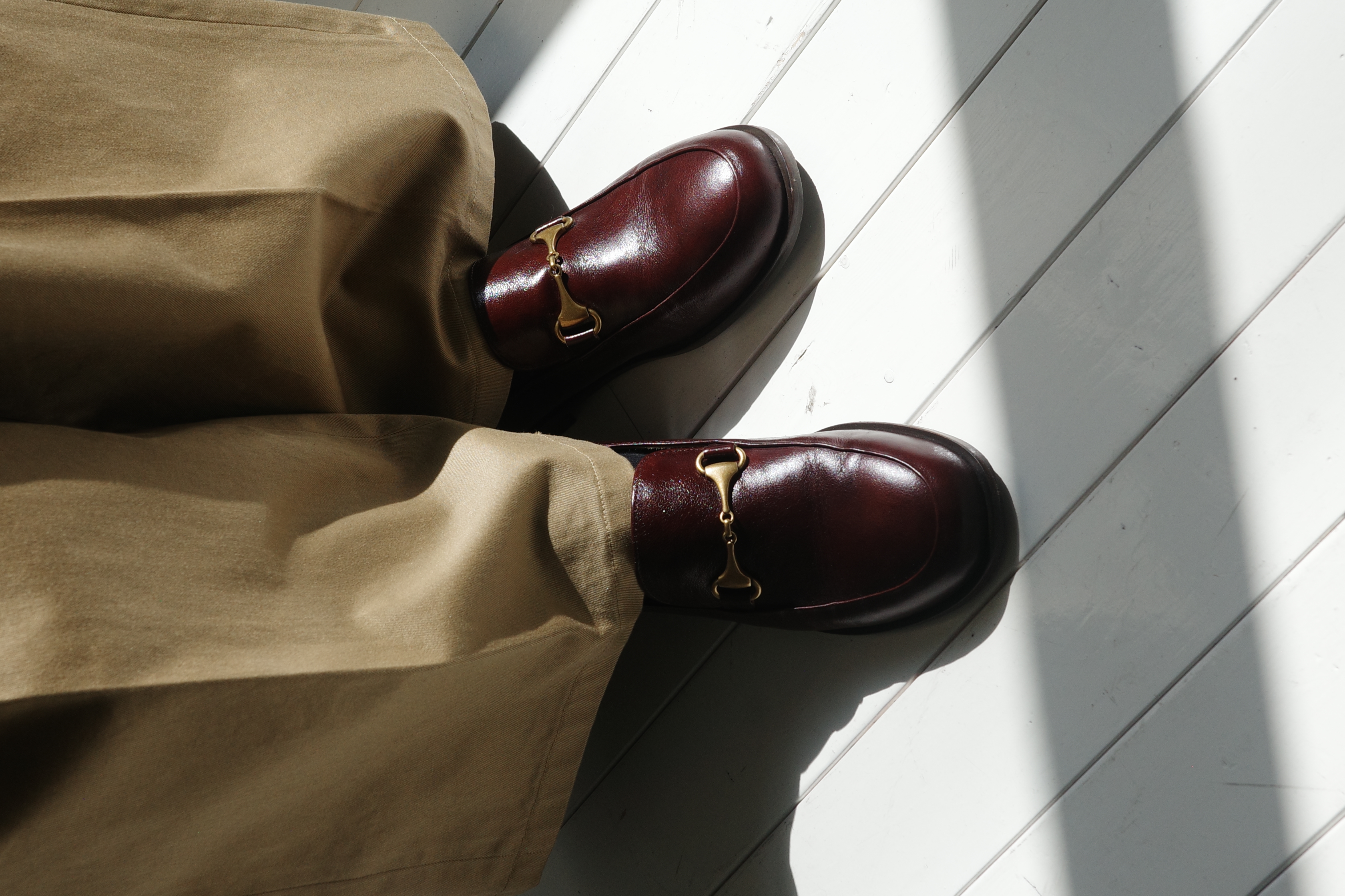 <생활명품 애>에서 선보인 로퍼는 언제나 공개 당일에 대부분 판매되곤 했습니다. 클래식한 디자인, 편안한 착화감, 합리적인 가격이 조화롭게 어우러진 좋은 구두였기 때문에 가능한 일이었겠지요. 오래 고민해서 잘 만든 제품의 반응은 늘 좋기 마련입니다. 블랙 색상의 로퍼 기억나시죠? 스웨이드로 만든 로퍼도 많은 분들이 좋아해 주셨습니다. 그리고 올해 봄에는 가죽의 색상을 변경했습니다. 버건디의 느낌이 우아하게 다가오는 와인 색상의 로퍼입니다. 어떤가요 다양한 착장이 떠오르는 색상이지요? 발의 모양은 우리들의 얼굴 생김새처럼 다양해 모두에게 편안한 착화감을 구현한다는 건 무척 까다로운 일이었지만 이제 <무이>와 함께 만든 제품들에 대한 신뢰는 견고하게 자리 잡았습니다. 가죽의 선택부터 구두의 완성까지, 무이와의 호흡은 이번에도 나무랄 데가 없었습니다. 로퍼(loafer)는 빈둥거리며 시간을 보내는 사람이라는 뜻입니다. 구두란 마땅히 끈을 묶어 신어야 하는데 그게 귀찮아 끈을 없앴으니 게으름뱅이라 부를만도 하겠지요. 하지만 시대가 변하고 복식이 자유로워짐에 따라 게으름뱅이의 신발이었던 로퍼가 클래식 구두의 대명사처럼 여겨지게 됐습니다. 고 다이아나 왕세자비도 가죽과 스웨이드를 가리지 않고 로퍼를 즐겨 신었습니다. 더불어 검정색 클래식 로퍼도 이번 봄 재생산을 마쳤으니 취향에 따라 선택하시길 바랍니다. 저희 로퍼는 마치 플랫슈즈처럼 유연하고 가볍습니다. 무이가 자랑하는 3중 쿠션의 힘이지요. 그리고 구두굽은 2cm로 과하지도 덜하지도 않게 완성했습니다. 좋은 구두는 내 몸 가장 아래에서 묵묵하게 착장을 완성시켜 줍니다. 아래 사진처럼 말이지요. 특별한 매력을 지녔지만 의외로 어디에나 매치가 쉽습니다. 또 양말을 통해 새로운 스타일을 만들어 낼수도 있으니 올 봄 로퍼를 활용해 다양한 시도를 해보시길 바랍니다. 끝